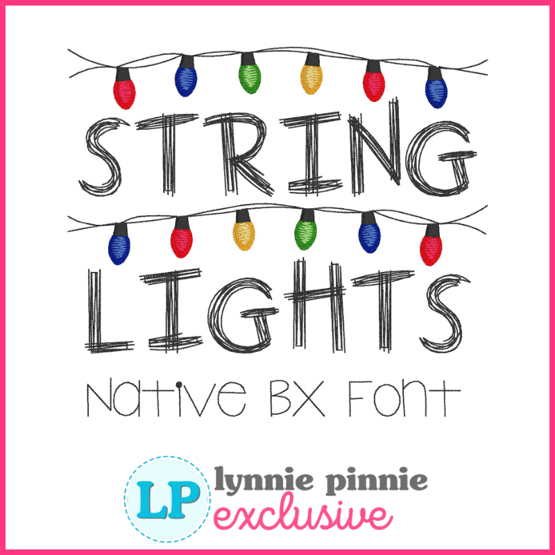 Scribble String Lights is a playful, whimsical scribble-style machine embroidery font inspired by the iconic string-light wall lettering style seen in fan-favorite supernatural series. This set includes a scribbly uppercase A–Z alphabet plus coordinating string light characters that let you build custom light-strand names, phrases, and holiday or themed designs.