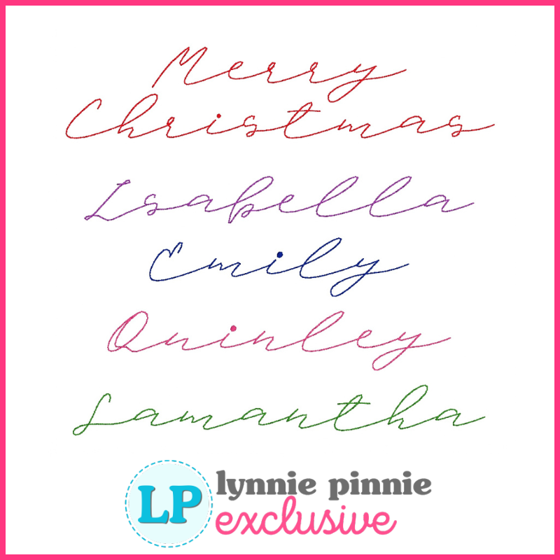 Moonlight Script is a smooth, handwritten-style bean stitch machine embroidery font that includes uppercase letters, lowercase letters, numbers, and punctuation. Its flowing, modern script style is perfect for names, monograms, children’s items, boutique apparel, gifts, labels, and personalized projects.